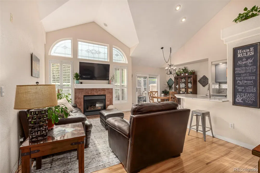 Discover this stunning 2-bedroom residence, designed for both comfort and style. Step inside to find soaring vaulted ceilings that enhance the spacious ambiance, filled with an abundance of natural light. The home features elegant plantation shutters and a perfect blend of hickory hardwood and carpet flooring. Recent updates include a newer furnace and AC (2019), water heater (2017), and windows in 2015, ensuring peace of mind and efficiency. The inviting living room is a perfect gathering space, complete with cozy gas fireplace that sets the stage for the warm, relaxing evenings. The eat-in kitchen, beautifully renovated in 2018, boasts a pantry, luxurious quartz countertops, sleek stainless steel appliances, and a peninsula with a breakfast bar - ideal for casual dining or entertaining guests. Retreat to the spacious primary bedroom, which offers a generous walk-in closet and a private bathroom for your convenience. Additionally, the versatile loft with a closet presents endless possibilities; transform it into a media room, office, or entertainment area to suit your lifestyle. Step outside to your tranquil back patio, the perfect spot to unwind with your favorite drink. Enjoy a fantastic location, just a minutes from restaurants, schools, and shopping. Don't miss out on this rare gem - schedule your showing today!
