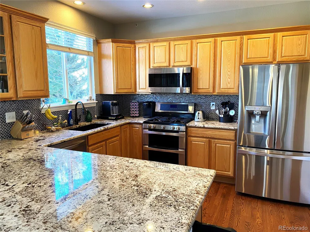 Fabulous remodeled 2 story near the Hearth. Hardwood floors throughout the main level, stairs, 2nd-floor landing. Remodeled Master Bath (removed tub, added shower, granite top, new flooring). Added Cabinets/granite top desk in the dining area. Granite throughout the kitchen. Upgraded all appliances (convection microwave oven) - added gas for range w/ 2 ovens. Added Cabinets and wood countertop in the living room. The Master bedroom has a walkout deck. New water heater installed May 2021. A water softener was added in 2017. Exterior painted Sep 2019. Fence stained Aug 2021. Roof replaced in 2016. Too much to list....come see! Sellers would like a post-occupancy agreement if possible.